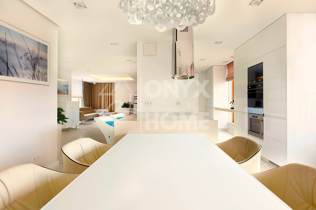 111,46 m² (wraz z pomieszczeniami przynależnymi) perfekcyjnie zaprojektowanej przestrzeni, wykończonej materiałami klasy premium (naturalne kamienie, spieki kwarcowe, zabudowa stolarska „na wymiar”).