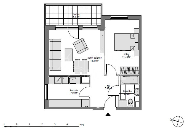Lokal o powierzchni użytkowej 45,80 m2, składa się z salonu z dostępem do dużego balkonu, jasnej kuchni (z prześwitem na salon), osobnej sypialni, łazienki oraz przedpokoju. Do lokalu przynależy również miejsce postojowe w hali garażowej pod budynkiem oraz komórka.