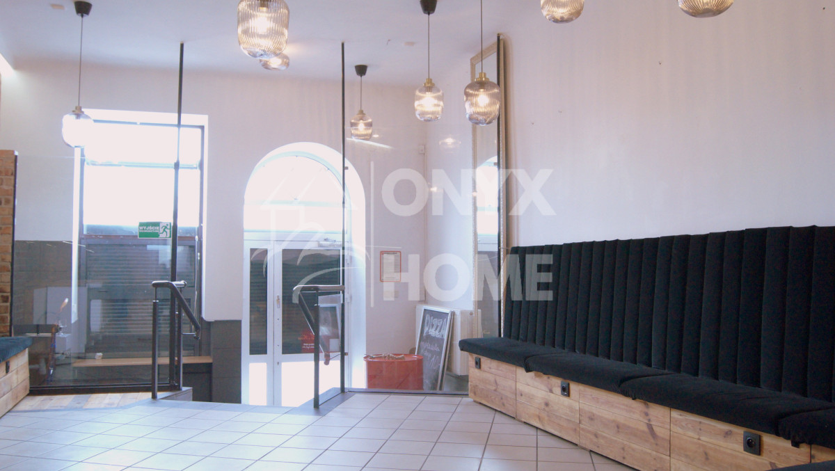 Lokal o całkowitej powierzchni 65,10 m2, aktualnie składający się z dużej sali położonej od frontu oraz zaplecza (podzielonego na kuchnię, biuro, mały magazyn, zmywak, WC, WC dla klientów. Istnieje możliwość zmiany adaptacji pomieszczeń na potrzeby nowej działalności (w porozumienia z właścicielem). Duży punktów elektrycznych, instalacja przygotowana do podłączenia energochłonnych urządzeń. Zimna woda i odpływy doprowadzone w kilku punktach, możliwość prowadzenia sprzedaży "z okienka". Dostępny parking od strony podwórza.