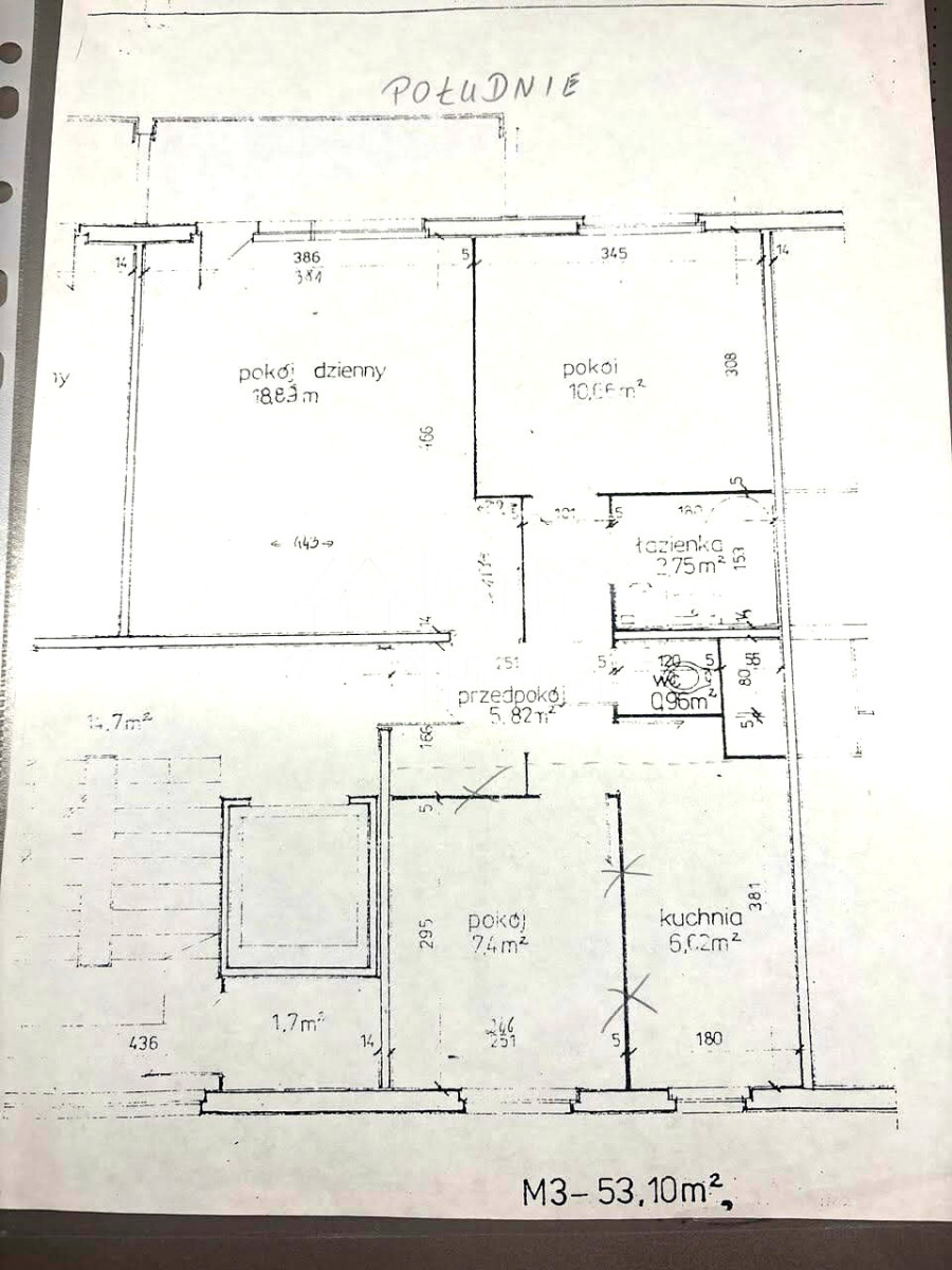 Powierzchnia mieszkania 53,10m² + 4m² piwnica.