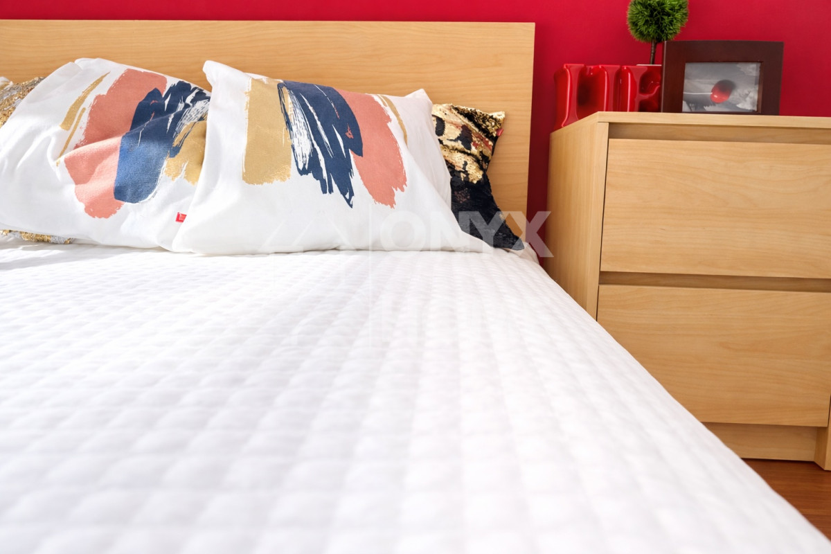- sypialnia wyposażona w łóżko, szafę w zabudowie z lustrami, komodę, zasłony, oświetlenie i szafki nocne (od strony południowo - zachodniej). Wyjście na taras o powierzchni około 9 m2,