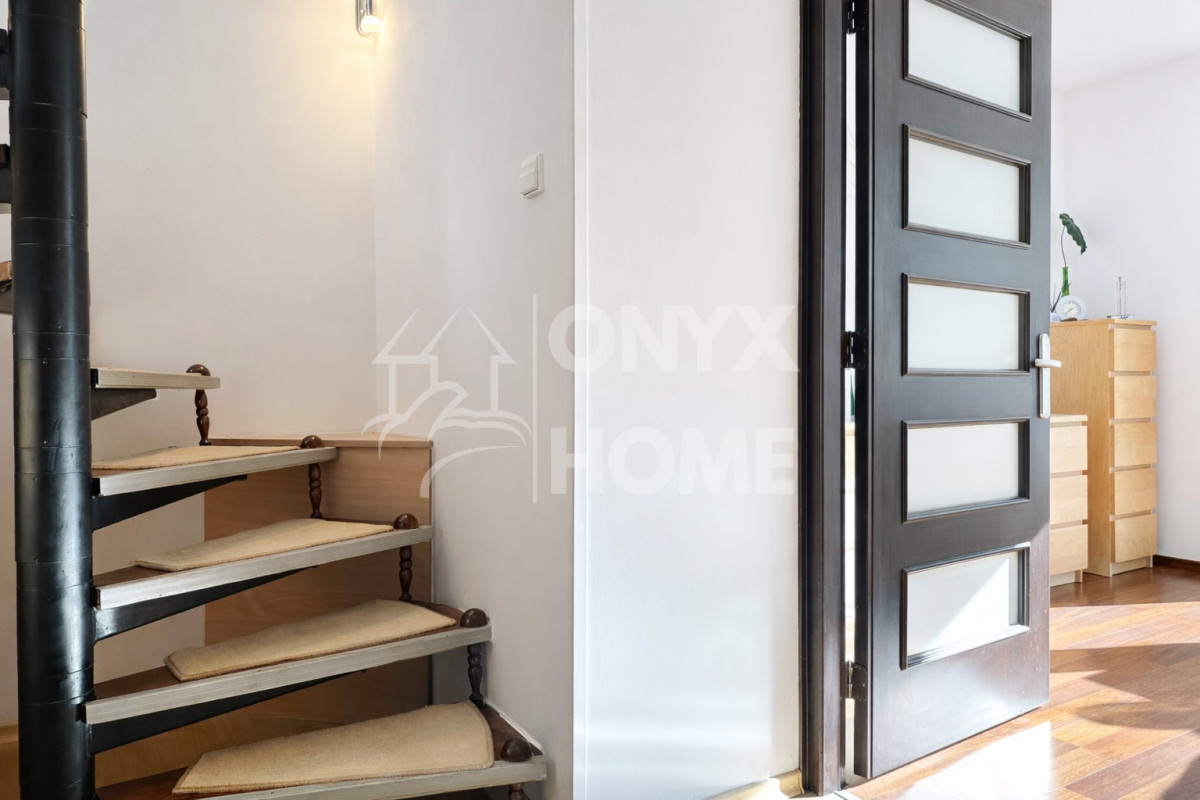 66 m2 + piwnica 1,8 m2. 2 poziomowe, posiadające zgrabne schody.