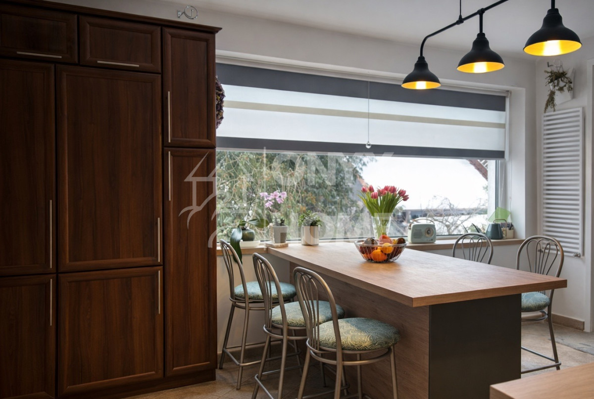 - kuchnia w pełni wyposażona z dużym oknem i możliwością wyjścia na taras,