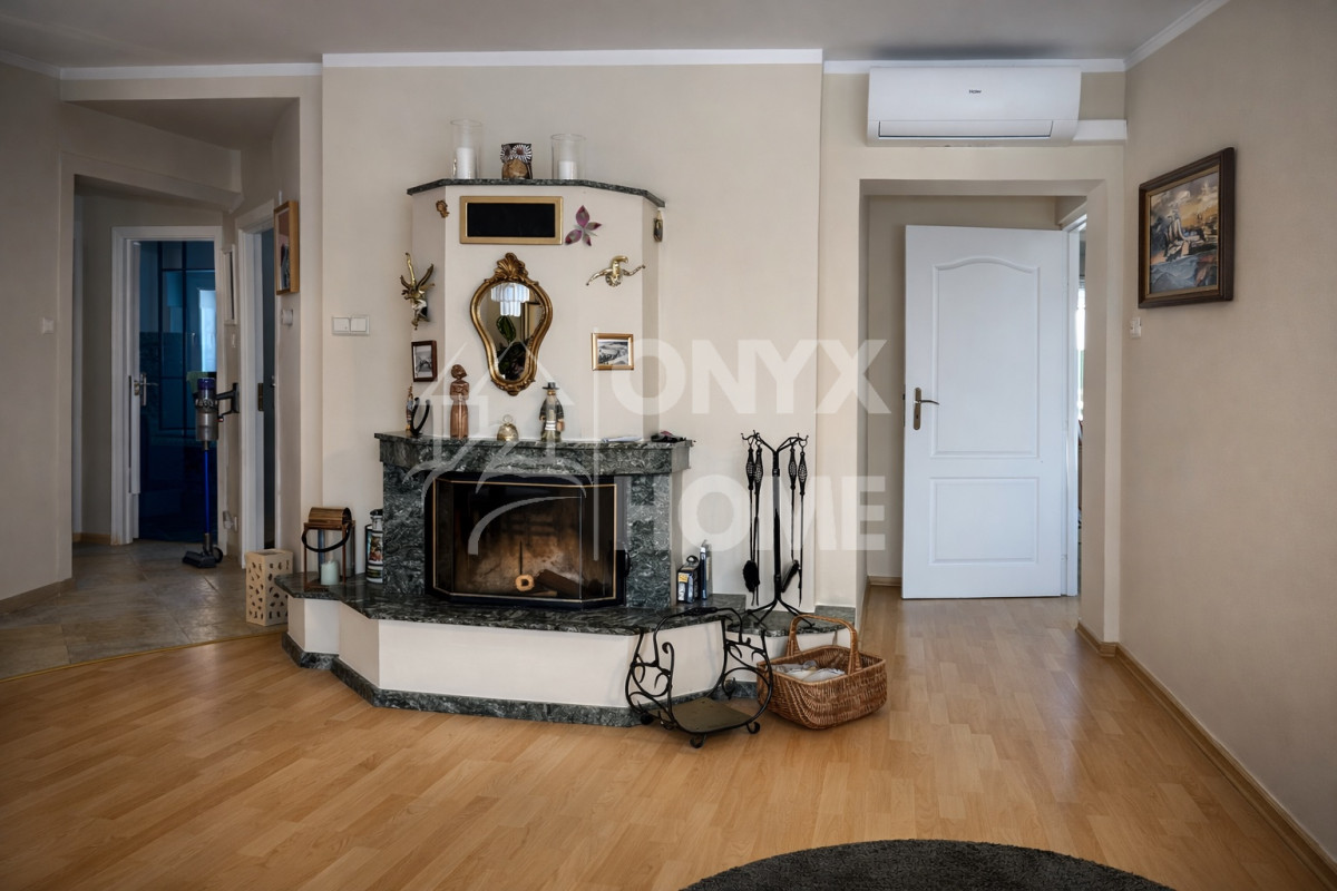 - salon z kominkiem zapewniający część wypoczynkową i jadalnianą,